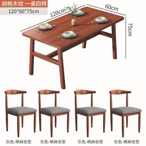 マホガニー木目 120x60+麻グレーマホガニー木目 NJチェア 4脚