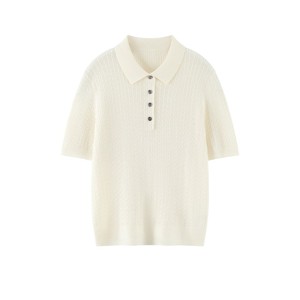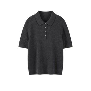 25年春夏新款新澳可机洗100%精纺羊毛POLO领麻花短袖休闲翻领上衣
