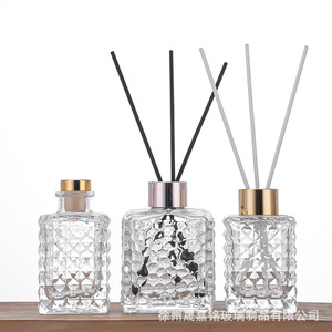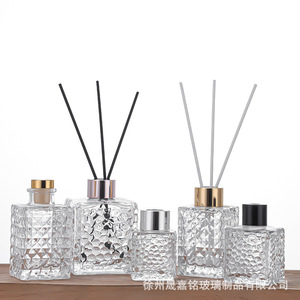 ウォーターキューブエンボススクエアアロマボトル屋内無火籐エッセンシャルオイルディフューザーボトル空ボトルガラスボトルメーカー卸売