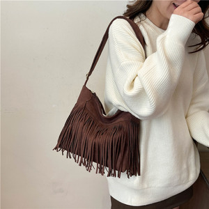 大容量の洋気の純色のフロストの復古の特包の女性の流蘇の潮流の個性のカジュアルなシンプルな斜めのショルダーバッグ
