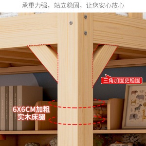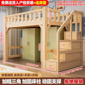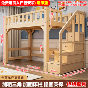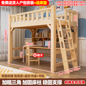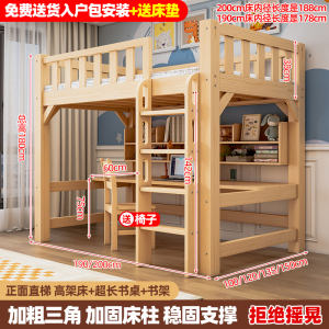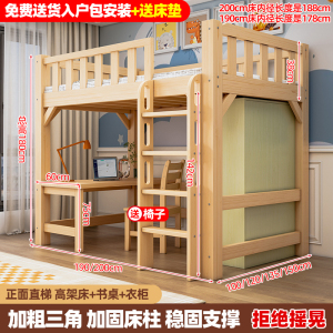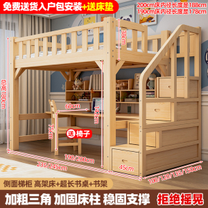 オール無垢材のロフトベッド、子供用二段ベッド、デスク付き、大人用寮用多機能ハイ&ローベッド