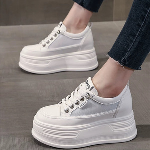 女性のためのインナー高さの白い靴 2025 春夏の新しい多用途プラットフォーム厚底通気性カジュアルシューズ SJN717-25