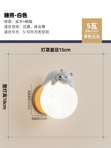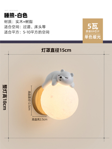 ホワイト [スリーピングベア] ウォールランプ 15CM ホワイトライト