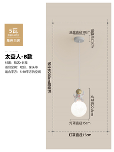 ホワイト+ゴールド [宇宙飛行士] シャンデリア 15CM ウォームライト
