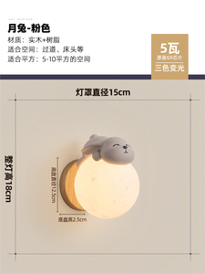 ピンク [月うさぎ] ウォールランプ 15CM 3色調光