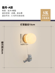 ウォールライト原木クリーム風かわいい漫画星動物寝室ベッドヘッドライト現代シンプル子供部屋ライト