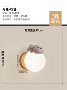 ピンク [月うさぎ] ウォールランプ 15CM ホワイトライト