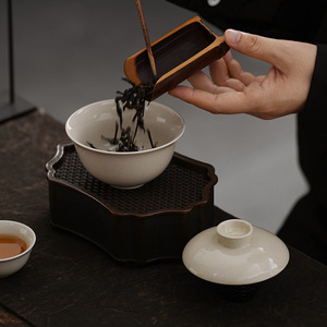 レトロな草木灰二才蓋ボウル家庭用シンプルなセラミックカンフーティーセットティーボウル水筒ティーカップベース