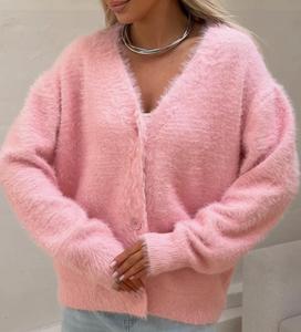 2025年越境人気商品 春秋用イミテーションミンクカーディガン ゆったりジャケット カジュアルスタイル 長袖ニットセーター レディース