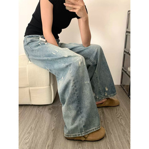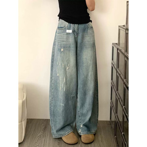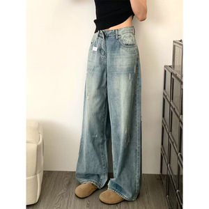 レトロハイウエストワイドレッグジーンズ女性のための 2025 春の新作通勤リラックスデザインウォッシュルーズストレートパンツ