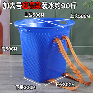 農村用のプラスチック製の背もたれバスケット、厚みのある大型プラスチック製の調理済みプラスチック製の農業用家庭用背もたれバスケット、正方形の収納バケツ、丈夫な大型の背もたれバスケット