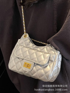 小香風菱格チェーンショルダーバッグ2025春夏新作気質熟女風網紅潮流斜め掛けバケツバッグ
