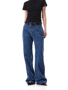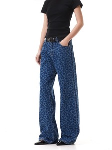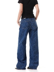 牛仔直筒裤女美式复古设计感小香花色时髦显瘦高腰宽松百搭休闲裤