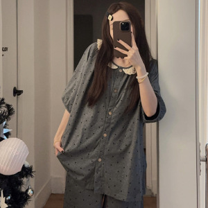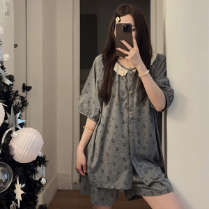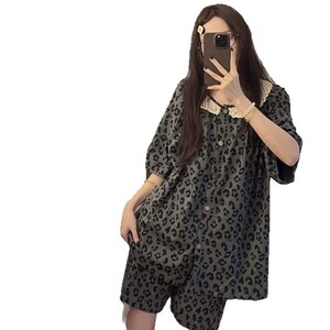 韓国版の甘い少女の夏の新型のパジャマの女性のゆったりした丸首のレースの半袖の半ズボンの部屋の服のスーツ