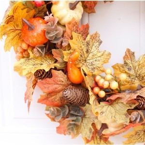 国境を越えた新しい秋のカボチャの松ぼっくりガーランドドアと窓の吊り下げ装飾品感謝祭の庭のベリーメープルリーフ籐サークル壁装飾品