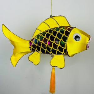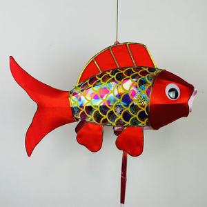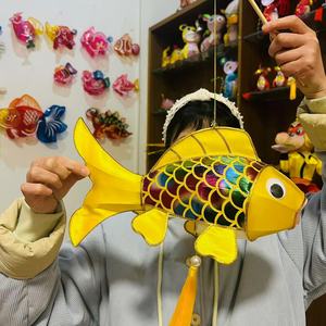 伝統的な非遺魚灯、錦鯉は魚灯を持って、屋外で漢服を着て魚灯を撮影する