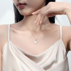 999純銀三生幸運ネックレス女森系ins白貝母イチョウ葉鎖骨鎖小衆軽贅沢高級感