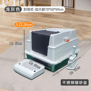 国境を越えたメーカーのステンレス製猫トイレ、特大、完全密閉、高さを高め、飛沫防止、取り外し可能、お手入れが簡単な猫トイレ