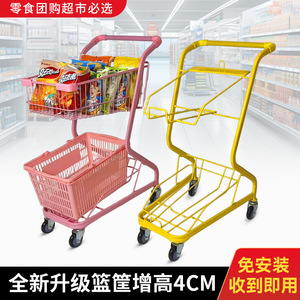 スーパーマーケットのショッピングカート 二層バスケットカート ショッピングモールカート バー KTV カート ショッピングモールのクレーンゲーム ピンクのトロリー