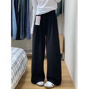 春夏韓式2025新型高腰ゆるいワイドパンツのしわ筋感が痩せているワイドジーンズの女性