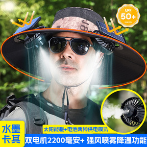 屋外ソーラーファンハット充電式強風大きなつば日よけ帽子登山釣り漁師帽子男性用