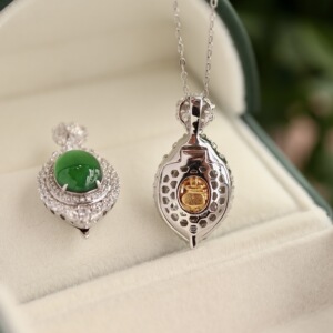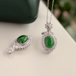 天然インペリアルグリーン翡翠鳩の卵スターリングシルバー象嵌ペンダントネックレスジュエリージュエリーライブストリーミング直接供給