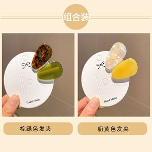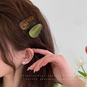 ブラウングリーンヘアピン+クリームイエローヘアピン【4本セット】
