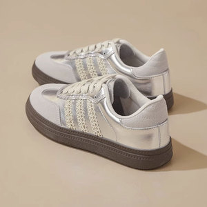 丸首百合カジュアル阿甘靴銀色運動板靴婦人金2025春夏新作レトロ平底徳訓靴
