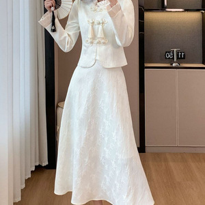 初秋のスーツとスカート、新しい中国風チャイナドレス、ボタン付きトップスとスカート、痩身ツーピースセット