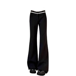 女性用の大きいサイズのアメリカンレーススーツパンツ、春と秋のホットガールフレアパンツ、ローウエストカジュアルパンツ、小柄な黒パンツ