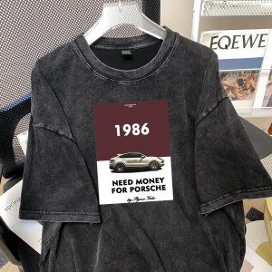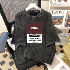 水洗い黒レトロゆるい潮アメリカ風百合気質外着トレンド100% 純綿夏減齢かわいいtシャツ