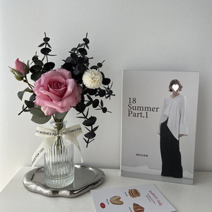 小香風バラ花造花花束セット食卓絹花客間装飾花瓶花芸置物