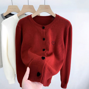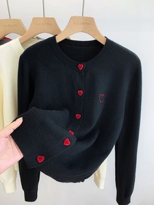 ユニークな愛の長袖ニットの女性2025春秋冬には、カーディガンのコートの上着を着ます。