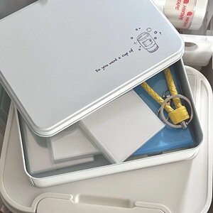 シンプルな白い鉄の箱の大きいサイズの小さいカードの写真のはがきは鉄の箱の長方形の馬の口の手帳の素材の箱を収納します。