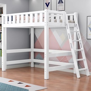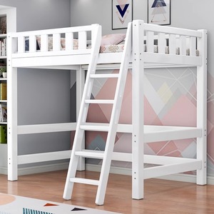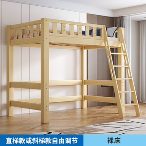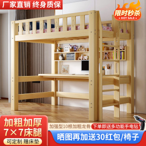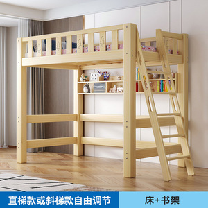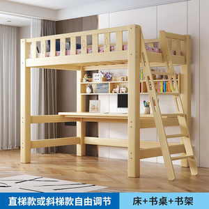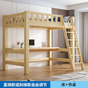 無垢材の高架ベッドシーツ、上層と下層の空のベッドとデスク、本棚、一体型ベッド、組み合わせベッド、子供用デスク、小さな部屋