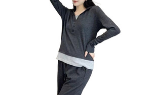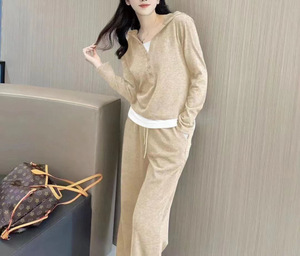春のファッションウェア、フェイクツーピーススウェットシャツスーツ、女性の春と秋のカジュアルスポーツウェアのツーピーススーツの完全なセット
