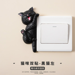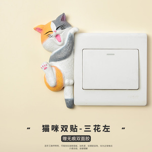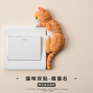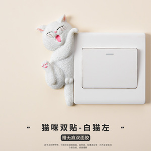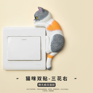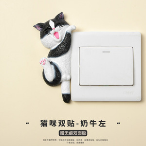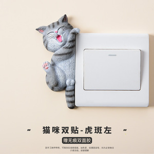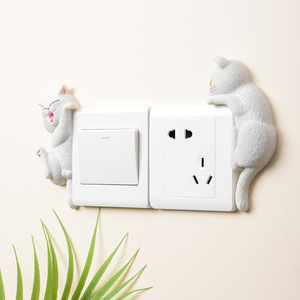かわいいペットの模擬猫ダブルスイッチ壁掛けコンシーラー、コンセントパネル、家の装飾ステッカー、立体樹脂