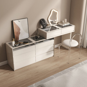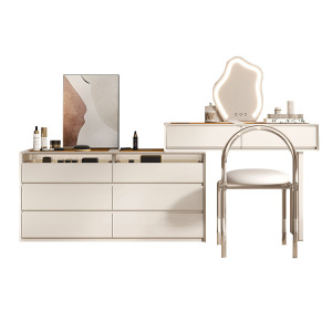 ドレッシングテーブル + 6段引き出しチェスト + クラウドミラー + アクリルスツール
