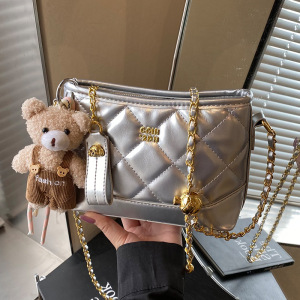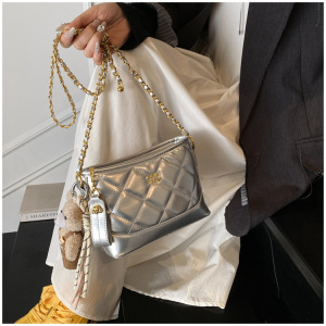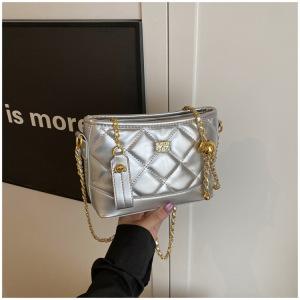 2025新型菱格刺繍線大容量バケツバッグ女性森萌感レトロチェーンシングルショルダーバッグ