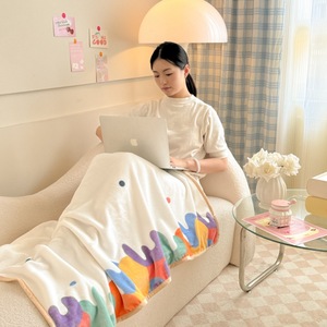 新しいショールブランケット新しいミルクベルベットプリントショールブランケット多機能学生昼休みブランケットコーラルベルベットマントブランケット