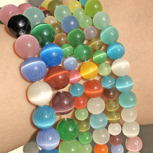 クロスボーダージュエリーアクセサリーキャッツアイストーンルースビーズ混合バッチ DIY 手作りレッドラウンド穴あきビーズ半完成品