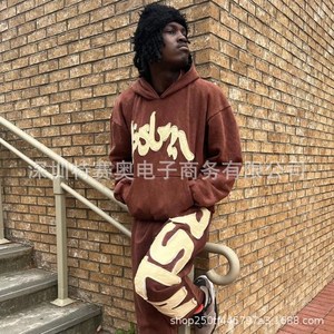 ヨーロッパとアメリカのクロスボーダー新しいトレンディなブランドデカール刺繍レトロパーカーy2kカジュアルルーズ多用途カップルスウェットシャツ