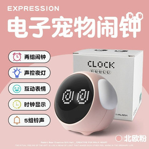 創意的な表情の子供の目覚まし時計の学生の女子学生の高い顔の値のデスクトップの時計の置物の机の上の小さい夜の明かりの電子の目覚まし時計