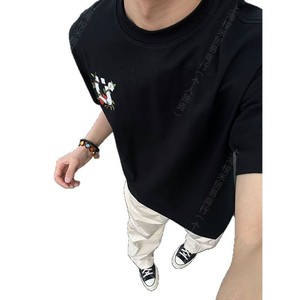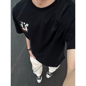 カラフルな花柄刺繍Tシャツ メンズ 夏 ヘビーウェイト 半袖 アメリカンハイストリート フロントショルダー