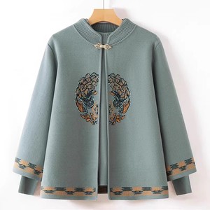 おばあさんの春の服のニットのセーターのコートの中でお年寄りの2つのセットの女性の60歳の70春秋のお母さんの上着の奥さん