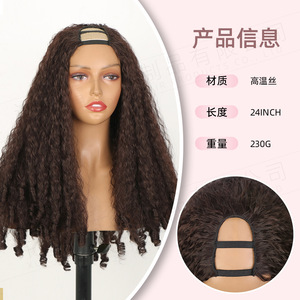 欧米風ウィッグ 化繊高温耐熱ファイバー U字型ヤキ スクリューロール ロングカールヘア クリップ式ヘアピース ハーフウィッグ Uパートウィッグ