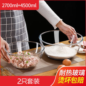 家庭用キッチン大型ガラス洗面器と洗面器厚みのある卵泡立て器耐熱混練洗面器ボウル洗面器透明