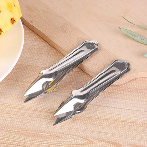 ステンレスのパイナップルは刀を挟んで専用のパイナップルを厚くして種を取り除きます。