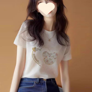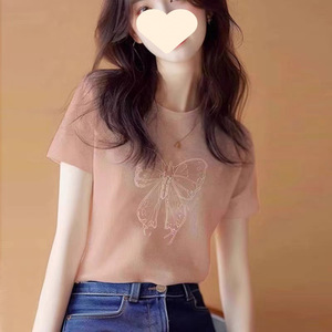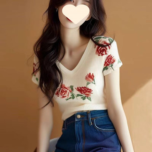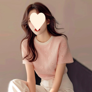 ピンクニット半袖Tシャツレディース2025新作ヨーロピアンスタイルシャツ夏スイートトップ見栄えの良い右肩