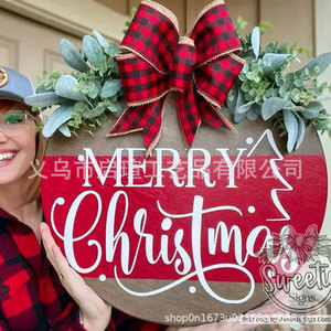 跨境新品圣诞节木质门挂牌挂件圣诞前门庭院大门背景墙装饰挂件
